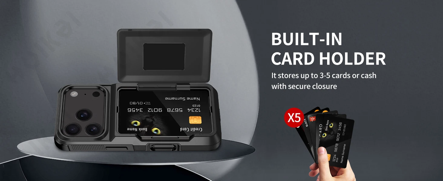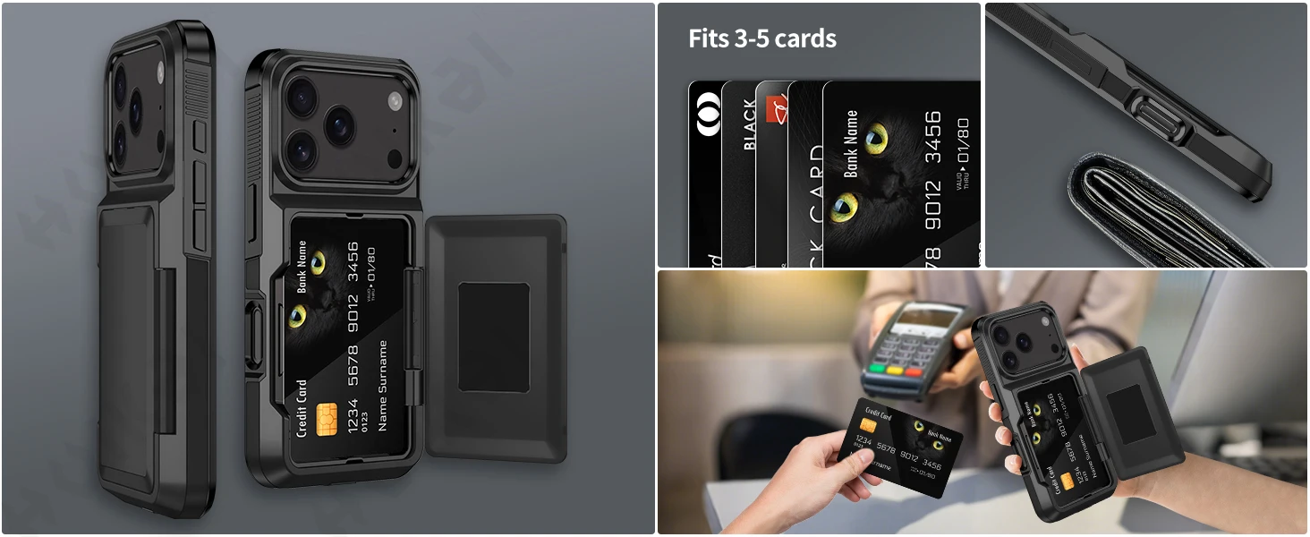 Case For iPhone 17 16 15 14 13 12 11 Pro Max Plus Wallet Credit Card Holder ID Card Slot Heavy Duty Protection Shockproof Cover